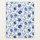 Jacobean style floral surface pattern design in contrasting blues on a white background.