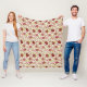 Jacobean Floral Pattern Reds Pinks Gold Cream Fleece Blanket