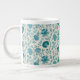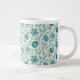 Jacobean Floral Pattern Teals on Cream Giant Coffee Mug