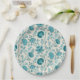 Jacobean Floral Pattern Teals on Cream Paper Plates