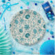 Jacobean style floral surface pattern design in contrasting teals on a cream background.