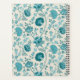Jacobean style floral surface pattern design in contrasting teals on a cream background.