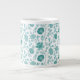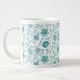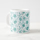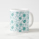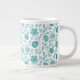 Jacobean Floral Pattern Teals on White Giant Coffee Mug