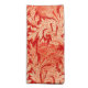 Art Nouveau, Jacobean damask pattern cloth napkins of stylized, scrolled leaves and flowers, based on a vintage William Morris textile design, digitally enhanced and colored in pastel to medium coral orange on a deep mandarin orange background