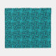 This fleece blanket has an abstract woven pattern in jade and black in a modern design.