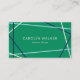 Eye catching business card in jade green with lines in turquoise, eggshell, and navy blue. A geometric business card with a modern design in strong colors. Personalize with your name and contact information.