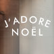 Simple, stylish J'adore Noel" quote art vinyl window cling decal with modern, minimalist typography in white in a trendy festive style. The quote translates to "I love christmas" in French. The greeting can be easily personalized for the perfect design for the xmas season to stand out from the crowd!