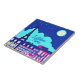 Ceramic tile in a travel poster of Paris under a deep blue starry sky with a full moon, and the caption "J'adore Paris"