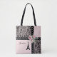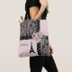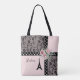 Carry a piece of Parisian romance with you everywhere with this chic and stylish tote bag. Featuring a captivating design, it beautifully blends soft blush pink panels with elegant black lace patterns, evoking classic French sophistication. A playful black and white polka-dot stripe diagonally crosses the design, adding a touch of modern contrast. Adorning the corner is a delicate cluster of blush pink roses and verdant greenery, creating a soft, natural accent. The iconic Eiffel Tower silhouette stands proudly at the bottom, accompanied by the heartfelt phrase "J'adore" in graceful script. This versatile accessory is perfect for daily essentials, shopping trips, or simply adding a touch of whimsical French flair to your ensemble.
