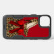 Fashionable Otterbox brand Samsung Galaxy S7 case done in red, on the top and a brown and black spotted wild jaguar print, on the bottom. Graphics of a chic pair of jaguar spotted stiletto high heels decorates the top red part of the case, with a red satin looking ribbon and bow below. Customize to add your own text. Great gift idea to your favorite fashionista.