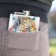 Well made flask, a little better than I had expected. Flask came in clear plastic box which gave it a nice presentation when I took it out of the zazzle packaging. Image is not printed on flask but on sticker. Don't know how this will hold up I haven't used it yet. This would make a Great gift! I plan to purchase more for friends! Cheers. I thought a little brighter than computer. Very crisp, writing wasn't