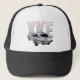 Silver Jaguar XKE coupe rear view with text on truckers cap. A genuine classic British sports car and one of the sleekest automotive designs in the last century