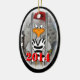 An animated Christmas female jail bird in his black and white striped prison garb, celebrating the holiday wearing his Christmas santa hat, peering out of his prison cell, behind bars. This funny jail bird Christmas ornament seals the memory of that less than stellar time spent in the pokey on Christmas. The background color may be changed to a color of your choice, using Zazzle's customization tool! A must-have for the jailbird you know, love can’t stand, or otherwise…