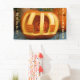 This carved pumpkin Halloween image resembles a captive pumpkin, behind bars in a jail, within a pumpkin!!! This banner reads "Happy Halloween". "Unique Halloween carved pumpkin image. Add your name, message or saying to make is personalized and uniquely yours. Use this image for your entire Halloween theme, including invitations and Halloween table ware. This carved pumpkin image is also available on banners, cookie jars, decorative Halloween plates and many other Halloween decorations.
