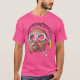 My 11 yo wore adult XL (5’7” 165#). The 8yo is small framed. She wore adult small and tied it in the back. Grandma wore adult large with long sleeve shirt underneath. Tall girl adult medium. Dark haired male adult large. Good quality dark Heather gray, Gildan brand shirt. -it was next up from basic choice and cost about $20 per shirt. Not too thick or thin. Washed and dried well, no major shrinkage. Not see-through. Can wear a bra under it fine. Screen print is just as shown and well done, front and back.