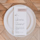 This dinner menu features a blush modern minimalist design and a custom name for each guest. This menu is perfect for any simple and classic event. Easily adjust the color to your liking.