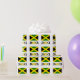The Jamaican Flag is black, gold, and green. The gold is a saltire that goes from the center to each corner. The black is on the left and right, filling in the outside of the saltire. The green does the same as the black, but on the top and bottom of the flag. This design features the word JAMAICA below the flag in the same design. Share your heritage with this wrapping paper.