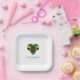 White Jamaica paper plates with Jamaican flag heart and monogram initials. Great for a destination wedding.