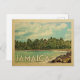 Jamaica design in Vintage Travel style featuring a tropical scene with palm trees.