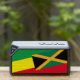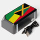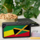 A bluetooth speaker decorated with Rasta and Jamaica flags. Great for Island groove and Jamaican events.