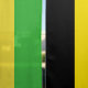 Black, gold and green Jamaican flag coloured vertical stripes patterned sheer curtains