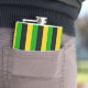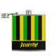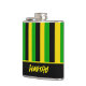 Jamaican flag coloured black, yellow and green striped hip flask. The text across the bottom is customisable so you can add your own name or message