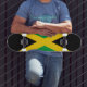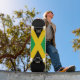 The flag of Jamaica in the Pan-African colors of yellow, black, and green. Green for the land, black for the strength of the people, and yellow for the sun.