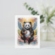 Jamaican Panda surrounded by Angels on a White Holiday Postcard