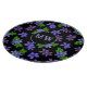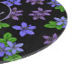 Black chopping board patterned with the purple national flower of Jamaica - the Lignum Vitae. There's a monogram area on the front for you to add your own initials