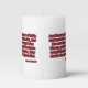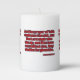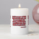 This pillar candle has a loubag medium print font with red letters navy blue outline displaying the "James 5:15" KJV bible scripture verse over a white background. The candle is covered with a beautiful full-color wrap hand poured, individually designed made with high grade American paraffin & beeswax and, burns approximately 40 hours made in the USA.