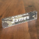 The product was just like it was in the pics, everyone at work loves it! Came on time and it was neatly packed. Bold and Clear. My name can be seen from far and it matches in color.