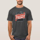 My 11 yo wore adult XL (5’7” 165#). The 8yo is small framed. She wore adult small and tied it in the back. Grandma wore adult large with long sleeve shirt underneath. Tall girl adult medium. Dark haired male adult large. Good quality dark Heather gray, Gildan brand shirt. -it was next up from basic choice and cost about $20 per shirt. Not too thick or thin. Washed and dried well, no major shrinkage. Not see-through. Can wear a bra under it fine. Screen print is just as shown and well done, front and back.