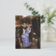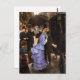 James Tissot The Bridesmaid postcard. Oil painting on canvas from 1883-85. French artist James Tissot lived most of his career in England painting charming scenes of everyday life. The Bridesmaid depicts a pretty young woman in a lavender Victorian dress climbing into a horse drawn carriage on her friend’s wedding day. The carriage door is held open by a young man in a tuxedo wearing a top hat and holding a black umbrella. Passersby watch the scene as they walk down the busy London street. The young woman’s elegant purple bridesmaid dress cleverly draws the viewer’s attention to the center of the painting. A beautiful gift for fans of Tissot, Victorian art, Victorian London, and vintage wedding paintings.