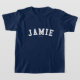 Jamie! Is your name Jamie? Or do you have a husband, boyfriend, male family member or male friend named Jamie? If so, this "Banner" shirt is exactly the gift that you're looking for! The design features "Jamie" in arched white lettering across the chest in the classic College font.