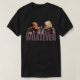 My 11 yo wore adult XL (5’7” 165#). The 8yo is small framed. She wore adult small and tied it in the back. Grandma wore adult large with long sleeve shirt underneath. Tall girl adult medium. Dark haired male adult large. Good quality dark Heather gray, Gildan brand shirt. -it was next up from basic choice and cost about $20 per shirt. Not too thick or thin. Washed and dried well, no major shrinkage. Not see-through. Can wear a bra under it fine. Screen print is just as shown and well done, front and back.