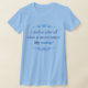 The material is a great quality that is hard to find with most tee shirts. Fabric was not see-through or thin at all, but was also very soft and comfortable. The shirt description states that it runs a little small, so I sized up one size for a perfect fit! I would definitely buy this type of tee shirt again because I love the fit and high quality fabric that I cannot find anywhere else. The printing was perfect and just as pictured. Loved the cute quote and really enjoy the tee in both the quality and design. I love quirky typography designs and funny quotes and I am extremely pleased with the overall quality and value I get at Zazzle!