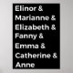Elinor and Marianne and Elizabeth and Fanny and Emma and Catherine and Anne.