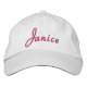 Janice name in embroidered in pink in a decorative cursive script font for your favorite person named Janice.