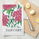 January Birth Flower Market Green & Pink Carnation Kitchen Towel