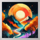 This poster shows the natural beauty of Japan with a stunning sunset, decorated with traditional towers and charming paths. The combination of natural elements and classic architecture provides a peaceful and stunning atmosphere.