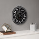 黒の和紙の上に、二重の円内に書かれた漢字の文字盤の時計です。内側の円にある全てのシミは分針の位置を表しています。