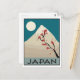 Graphic illustration of a Japanese maple tree in front of a mountain with a moon above. The name Japan is at the bottom in a deco style font.