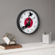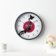 The size of the clock is dramatic and the abstract alcohol ink design is soothing and intricate at the same time. I chose the black frame that adds pop to the blue and gold design. The gold printing would be better in a slightly darker or larger font. I love it and I’m looking for just the right place in ny new apartment. I would recommend this clock for a personal gift or a present. I feel that the quality is excellent for the money! I’m a bit of a clock nut so I’m pretty particular about my purchases. The clock is larger in diameter than many if the clocks I have, so it stands out very well. I think a slightly darker printing color and a moderately larger size would best suit a professional decor or add more impact in a work place item.