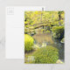 Travel photography Japanese travel print with image of traditional Japanese garden with greenery and bridge over pond in Spring.Traditional Japan. Beautiful Japanese scenery.
