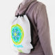 Japanese, zen, symmetric, geometry with color blue, green, and yellow.