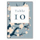 Add a touch of elegance to your wedding decor with these Japandi-inspired table numbers. Featuring a cherry blossom tree branch against a textured light blue background, this table number blends vintage charm with modern sophistication, perfectly complementing your wedding theme.