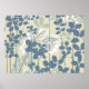 Japanese Asian Art Floral Blue Flowers Print - This simple woodblock print art is from Japan, from a 1902 Japanese design magazine. This interpretation is a rustic blue and white version of the original art print.
