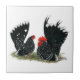 Mottled chickens are glossy black with every second or third feather tipped in white. These Japanese bantams demonstrate the color pattern nicely.