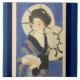This half length image shows a woman in kimono between the blue curtains which access a bathhouse - The curtains are decorated with a pretty parasol design - In her hands are bath supplies, and her face lightly flushed from the hot water. This and the other 19th century Japanese beauties in this collection have been digitally Remastered by artist Lace9 of the Hand-Drawn stores.