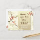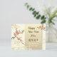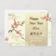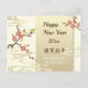 A bird is Mejiro (Japanese White Eyes) on a stylized plum blossoms tree in the background which has Japanese pattern call Unryu in light beige. The texts are in dark chocolate brown and all of them are customizable. This is a digital illustration.